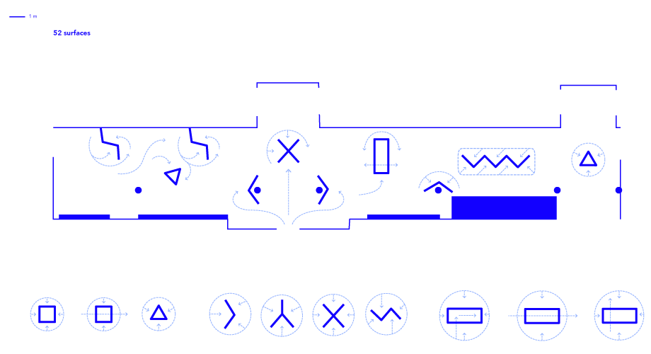 I designed a series of simple modules: 90cm wide wooden frames, easy to dismantle and transport to meet the requirements of this nomadic exhibition.