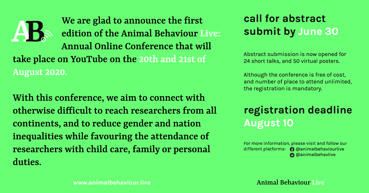 - Animal Behaviour Live : is an international online platform promoting sustainable and inclusive events to bring together researchers in animal behaviour from all over the world to discuss the latest research and question our academic practices.