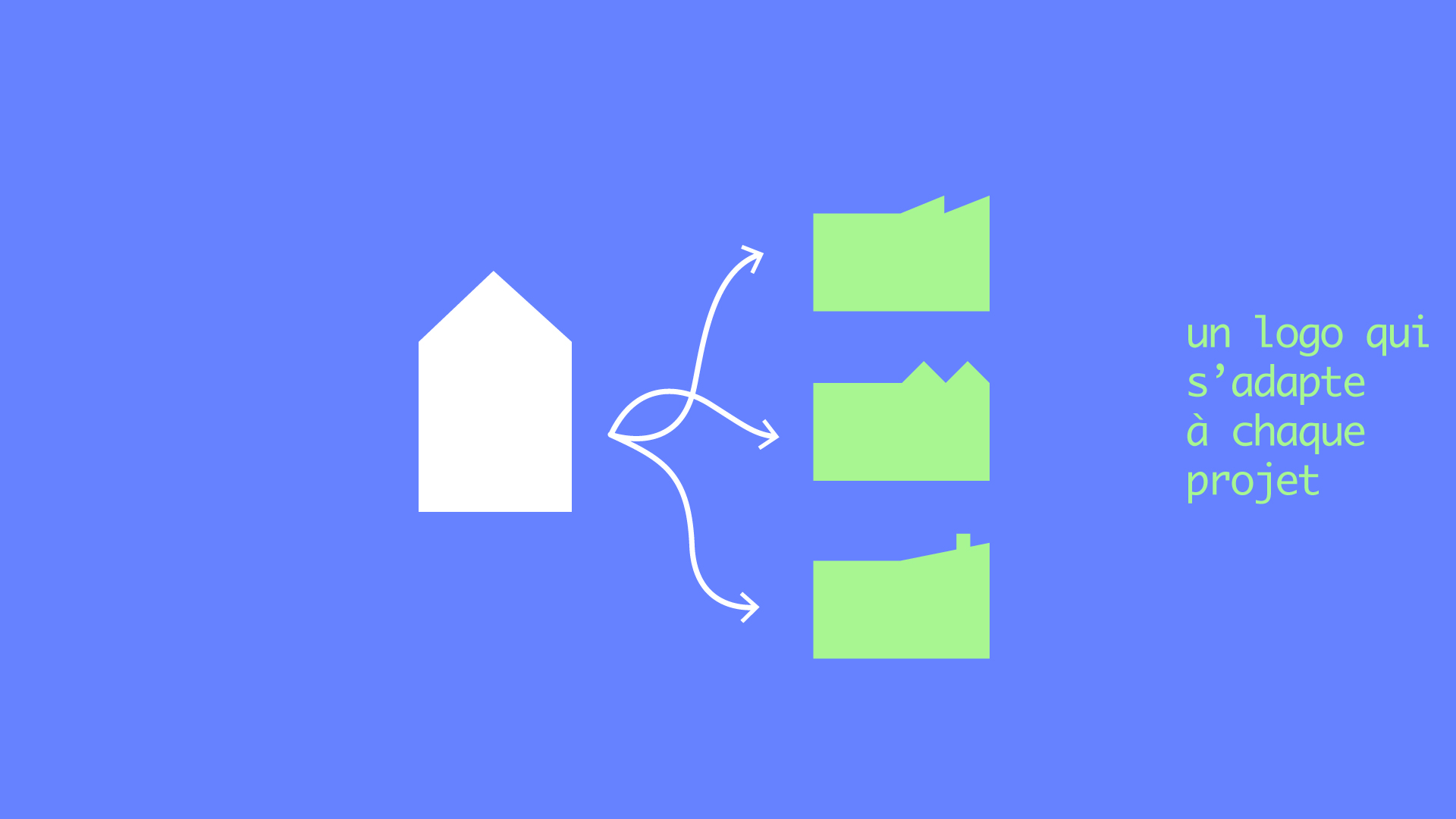 We placed the idea of HOME at the heart of this identity. So the house is at the centre of the logo, to represent the idea that you can create a house anywhere. It is the fixed part of this liquid logo, and is superimposed on all kinds of buildings.