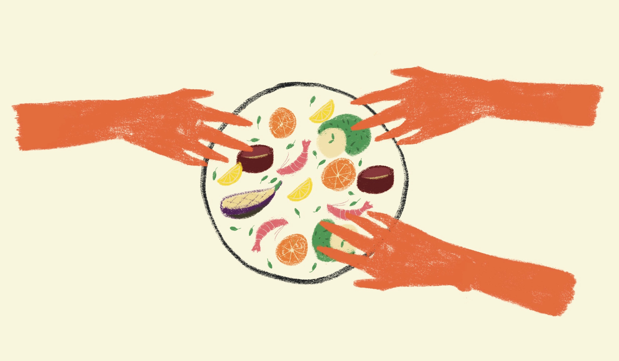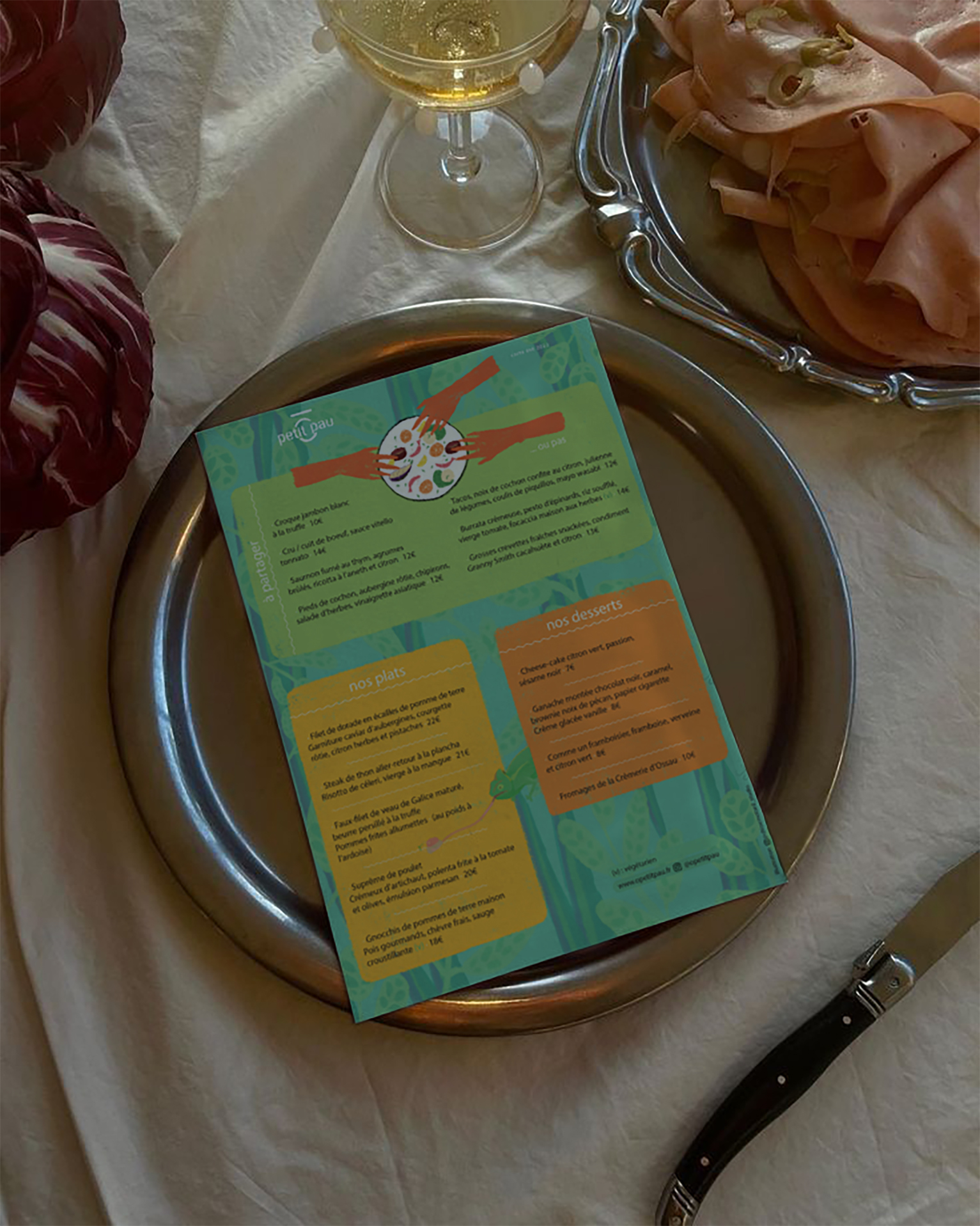 For a year, I accompanied the changes made to the menu of the restaurant. Autumn, Winter, Spring, Summer... courses and recipes are re-invented around the fruits and vegetables of the season. We poetically translated each season with convivial and playful illustrations, based on the delight of gathering around a delicious meal, embrassing the mess of a crowded table.